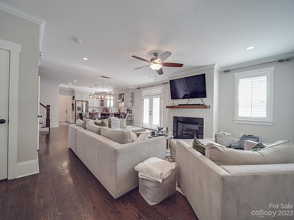 This Duet style townhome is one you don't want to miss! Located in Historic Camp Green, with a beautiful neighborhood park just steps away. Completed in 2019, this home offers the open floorplan you've dreamed of, with hardwood floors, quartz counters, farmhouse sink, microwave drawer, and soft-close cabinets. Powder room and laundry on the main level. The lighting is absolutely beautiful, and is supplemented by tons of natural light. Upstairs you'll find a gorgeous primary suite with large bedroom, walk-in closet, freestanding tub, and an amazing shower. Two additional bedrooms, loft, and hall bath round out the upstairs, and every room has unique details and accent walls. The privacy fence surrounds an incredible outdoor entertainment space with room to grill, play, and relax. Just minutes from Uptown Charlotte and surrounded by new developments, restaurants, and breweries, this adorable townhome will not last long!