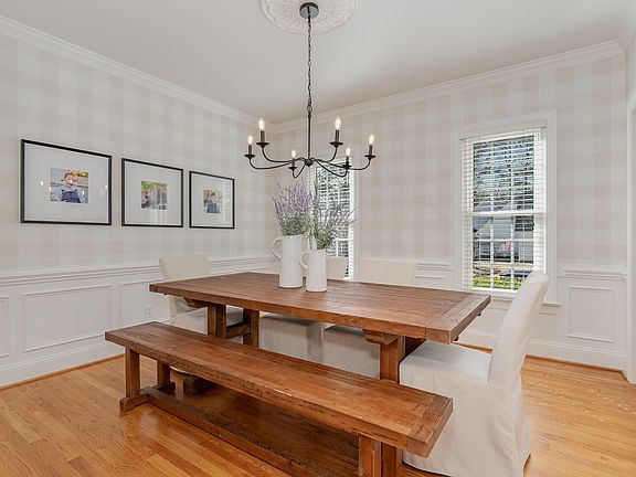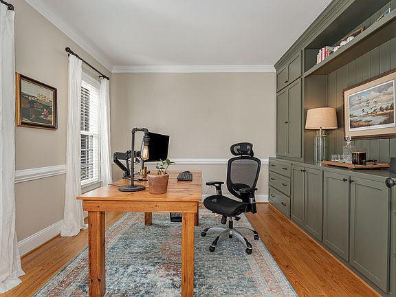 Named after the stately 18th century residence recognized for welcoming some of England's most prominent members of society, Harptree Court is synonymous with elegance, grace, nobility, and tradition. The inviting facade of this colonial masterpiece is but a foretaste of the splendor within. Subtle and traditional architectural elements greet you in the foyer, which connects to a masterfully redesigned home office - complete with divided lite glass french doors and a custom built-in display cabinet guaranteed to inspire. The family room boasts solid oak hardwoods, a masonry wood-burning fireplace flanked with custom built-in cabinetry, and a plethora of natural light. Open to the family room is a spacious entertainer's kitchen, complete with a sun-soaked breakfast nook and convenient center island. Painted white cabinetry, granite countertops, and stainless appliances provide timeless finish details that compliment almost any style preference. Warm, tasteful, and understated formal dining room. Upstairs you'll find three generous bedrooms with ample storage and plush carpeting, a proper laundry room with built-in storage, and a private primary suite with an impressive walk-in closet. Primary ensuite with soaking tub, dual vanities, and walk-in shower. Finally, traverse to the third floor and find a fully finished bonus space with built-in bookshelves and a walk-in attic for copious storage. Other notable features include an encapsulated, moisture-controlled crawlspace, new double-pane windows on the front of the home and in other areas. Young roof (2013) with architectural asphalt shingles and durable fiber cement siding. Refreshed landscaping complete with beautiful, native installations encircled by a custom wood picket fence. Zoysia lawn springs to life in warmer months. Conveniently located adjacent to shopping, dining, and lifestyle amenities that only serve to bolster the desirability of this stately, meticulously maintained and loved residence. Make this home yours today!