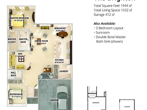 Enjoy one level living in a maintenance free community! The Brighton has 2 bedrooms, 2 baths, and a flex room that can be used as a den or home office. The open concept living area is perfect for entertaining. The kitchen has plenty of storage and offers white Maple cabinets, granite countertops, oversized island with overhang for additional seating, pantry, and Stainless Steel kitchen appliances. Watch the snowfall in your sunroom or stay cozy by the fireplace in the great room. Quick-Step flooring throughout the main living area and upgraded carpet in the bedrooms and flex room. The Architectural trim adds the final details. Enjoy maintenance free living, beautiful ponds, and a great community in Pepper Cove!