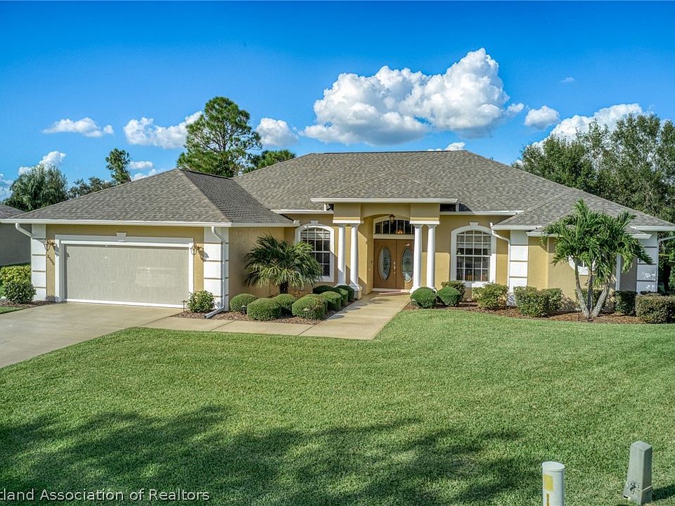 Gorgeous home in desirable Manor Hill. Upon entering the foyer you see right through the French doors to the large pool area. Home has a split floor plan with a formal living room and family room which make it nice for raising a family or having guests for an extended period of time. The rooms are very generous in size. Wait until you see the pool patio, it is perfect for entertaining. Yard is completely surrounded by viburnums and every fruit tree you can imagine. New roof this year, home was freshly painted last year. Ten speaker surround system, central vacuum. Sun n Lake is home to two championship golf courses with lots of amenities and close to area restaurants, shopping, medical facilities and hospitals. Whether you're a full time resident or snow bird Sun n Lake has it all.