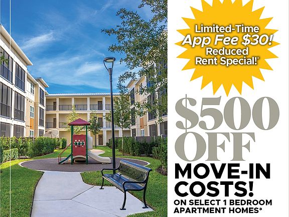 • Special offer! $500 OFF Move-In Costs on Select 1 Bedroom Apartment Homes!* For a Limited Time, App Fee is only $30!* *Must move in by 11/28/25. Restrictions apply, contact leasing office for details.