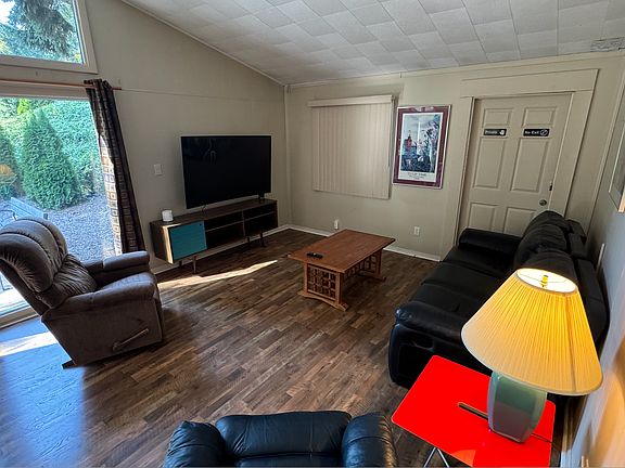 This 3 bedroom, one bath home is move in ready; including all furnishings, a stocked kitchen and linens. This is an open floor plan home with vaulted ceilings and a mid-century modern style. Fresh paint in all bedrooms, bathroom and hallway.