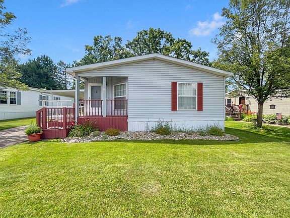 If you would like more information about this home or would like to schedule a showing, please contact the listing Broker/Agent, NOT the park office. The home is located in Independence Woods manufactured home community. It's a 3 bedroom, 2 bath home located on a perimeter lot with a nice CARPORT and DECK. Square footage is 1560sf, measuring 28x60. Current monthly lot rent is $754. Exterior features include VINYL siding and skirting, an asphalt shingled ROOF, a 63 ft DRIVEWAY, Metal Accessible RAMP, nice front PORCH, rear DECK with AWNING, 12x9 SHED, CARPORT, GUTTERS, and THERMOPANE windows. Known updates include CENTRAL AIR (2023) and FURNACE (2022). Coming in the front door, you'll enter the LIVING ROOM with a COAT CLOSET, BAY WINDOW, and carpeted floors. The living rooms opens to the FORMAL DINING ROOM with a ceiling fan and carpeted floors. The KITCHEN features linoleum flooring, laminate counters, an eat-in dining area and appliances that will be included with the sale (electric range, dishwasher, refrigerator). The home has a split floorplan with the MASTER BEDROOM sitting off the front living room. It has a nice hobby-cubby, WALK-IN-CLOSET, ceiling fan, carpeted floors and its own private bathroom. The MASTER BATHROOM has a newer tall toilet, porcelain sink, a jetted tub & separate shower. The remaining BEDROOMS sit with the FAMILY ROOM. The family room has a doorwall that leads to the REAR DECK. There's also additional countertop seating for dining. There's a full LAUNDRY ROOM with storage, gas water heater, 100amp electric service, linoleum flooring and a WASHER and DRYER that will be included with the sale. Contact us today for your private viewing.