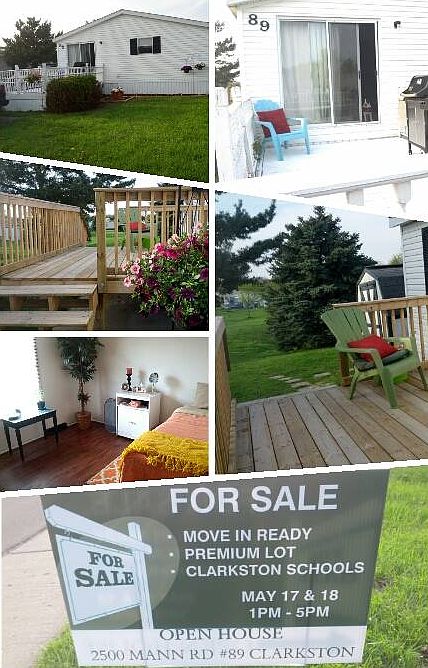 1991 Mansion 28 X 48 Premium lot (large backyard) New flooring, doors and deck. Clarkston school district, close to I-75, Great Lakes Crossing, DTE Music Theater, Pine Knob Ski Resort House is move in ready and offers a fully furnished option including: washer/dryer, refrigerator/freezer, oven, dishwasher, grill, office furniture (desk, chair, shelving unit) bedroom furniture (queen size mattress/frame, dresser, 2 nightstands) couch, chair with ottoman, end tables, lamps, shelving, ect *COMMUINITY GARAGE SALE* June 19-22nd 9am-5pm House will be available for showings at this time. Moving sale- EVERYTHING MUST GO!! Sellers are moving out of state and motivated to sell!