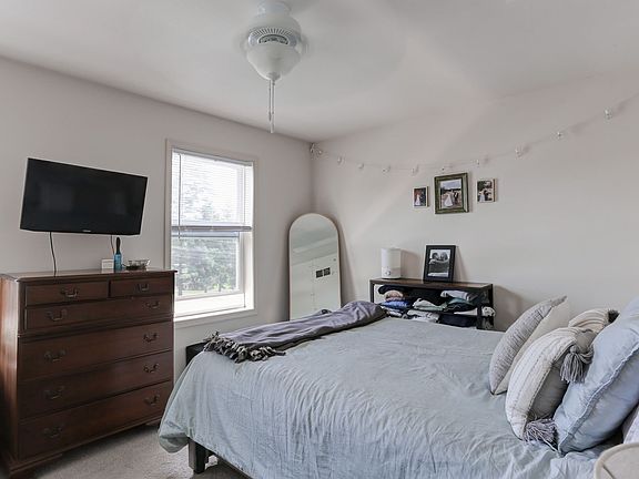 This bright and inviting two-bedroom, one-and-a-half-bathroom townhome offers a comfortable layout with thoughtful details throughout. The main level features a convenient half bathroom, while the full bath is located on the second floor alongside both bedrooms. Enjoy the natural light that fills the space, creating a fresh and welcoming atmosphere. The eat-in kitchen provides a cozy spot for meals, and ceiling fans add extra comfort throughout the home. Central air ensures year-round climate control, and the unfinished basement offers ample storage or room to expand. Step out onto the back deck to unwind, and take advantage of the townhome's prime location near major roadways and local businesses for easy commuting and everyday convenience.
