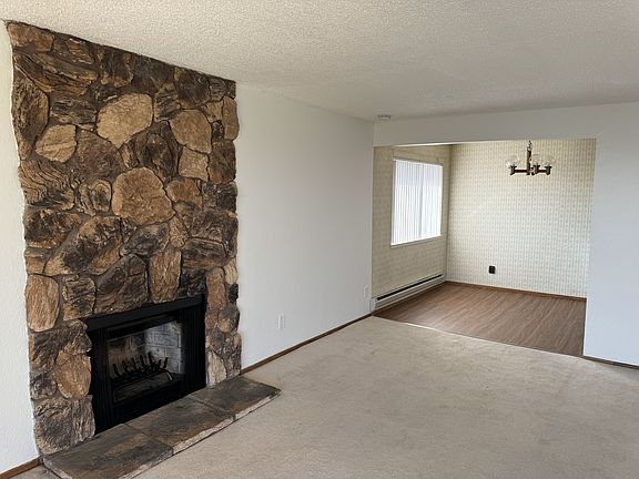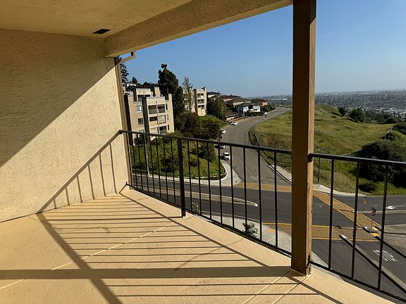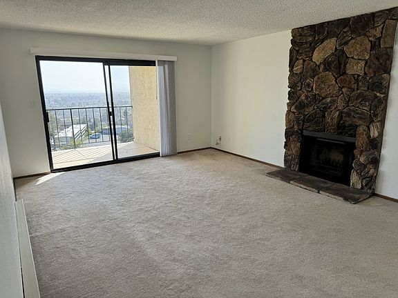 This condo has a balcony off the living room which has a stone floor to ceiling fireplace. The kitchen has been remodeled with newer appliances, and has a separate eating area off of the kitchen. There is a mirrored closet in the entry hallway for storage and for guests. The hall bathroom has a stack-able washer and dryer for your convenience as well as a long sink vanity and mirror, it has a tub and shower with glass shower doors. Both of the bedrooms have the same fantastic view that you see from the living room and they have mirrored closet doors as well. The master bedroom has a mirrored door with a large walk in closet, and the bathroom has a long vanity sink and mirror and a stall shower. The is parking on the lower level for this unit and it has a second parking space on the exterior right side of the building there is a large storage locker in the garage space. This has a secured entry way on street level on So. Crest and the unit is on that level. This will be shown by appointment only. Full access to Castro Valley shools. This Castro Valley Condo has magnificent view of the Bay and sunsets from the living room and both bedrooms. Water and garbage is paid, tenant is responsible for P.G. & E. any pet must have landlord references.