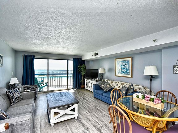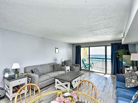 This gorgeous fully furnished oceanfront unit in The Oceans resort in Cherry Grove is a MUST SEE! This immaculate 1 bedroom 1.5 bathroom condo is tastefully decorated and includes a large living and dining area and a fully equipped kitchen complete with a breakfast bar. A spacious master suite with a bath and vanity. Best of all, the oceanfront balcony. Imagine beginning and ending your day enjoying those incredible views of the ocean, pool, and coastline! The unit is located on pool level with direct access from the balcony to the pool—a huge plus for families as you can be in the unit and still watch your kids at the pool! The amenities include an outdoor pool and sunbathing deck plus recreation facilities. Furniture was replaced in May 2021, and the unit was also painted less than a year ago. ALL new flooring was installed in September 2021, and the HVAC was replaced in July 2019. Wonderful location in walking distance to the fishing pier, shopping, and restaurants. A grocery store is also right across the street! Don't miss this fantastic opportunity to own the perfect vacation getaway!
