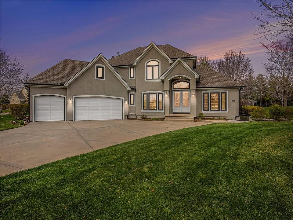 First impression is a well-deserved WOW!  From the front elevation and treed corner lot to so many interior upgrades; you’ll be very happy to have discovered this lovely 1.5 Story in Staley Farms. You’ll notice the CertainTeed Belmont roof system, newer black gutters, Renewal by Anderson Windows!  Step into the foyer and appreciate the curved staircase, formal dining room open off the foyer and Great Room with gas fireplace. Nearly every interior finish has been touched, trim work, new carpet, wood floors, interior paint.  The very spacious kitchen is a cook’s delight with an oversized island, beautiful custom built in cabinet, high end appliances! Primary Bedroom suite is conveniently located on the main level and is a true personal oasis.  Bedrooms 2 and 3 are found on the upper level, with one bedroom having an attached, darling additional space for playroom or hideaway.  The open loft area is a great additional upper-level living space for reading, games or gathering for fun.  Fourth Bedroom is non-conforming in the LL with a full bath easily accessible to bedroom, exercise area and rec room.  The 10” high lower level ceilings offer a comfortable casual recreation space with full bar available for entertaining in the walk up/walk out LL.  Plenty of garage space with 3 car bays on the front, and a 4th bay for golf cart or lawn equipment located with a side entry.  This is a 10!  Make time in your day to see this beauty in Staley Farms!