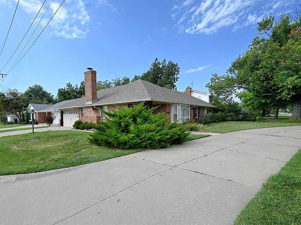 This charming brick home is nestled in the Belle Isle neighborhood. The home sits on a corner lot across from the elementary school. The exterior features include a new roof (October 2023), a circle drive, beautiful, mature trees, gorgeous landscaping, privacy wood fence, and a quaint, covered brick back patio. The interior floor plan boasts of three bedrooms, two updated bathrooms, two large living rooms, a formal dining area, and a sizable utility room. The updated kitchen has an eat-in breakfast nook, stainless appliances, updated countertops and backsplash. The spacious bedrooms feature walk-in closets. The primary bedroom boasts of unique bay windows. Other features include a traditional, wood burning fireplace with brick surround, a sliding back patio door, bay windows in the kitchen and formal living/dining room. Per owner, HVAC and hot water heater were recently replaced. The property is located close to the prized shopping areas, restaurants, entertainment and access to all OKC has to offer.