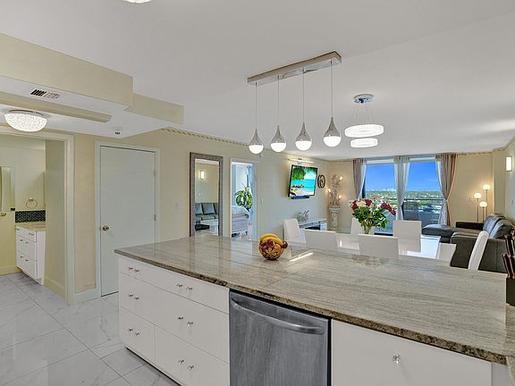 Welcome to this stunning renovated property offering contemporary high-end finishes and breathtaking Intracoastal views. Situated on 18 acres of prime land, this residence offers resort-style living at its finest. The location is truly ideal, with beaches, shopping, and restaurants all within walking distance. Step inside and be greeted by the luxurious interior, showcasing the finest craftsmanship and attention to detail. The renovation has transformed this home into a modern masterpiece, boasting sleek lines, premium materials, and an abundance of natural light. Every room has been thoughtfully designed to create a harmonious living space. Enjoy the panoramic views of the Intracoastal waterway, providing a serene backdrop for daily relaxation.The spacious living areas are perfect