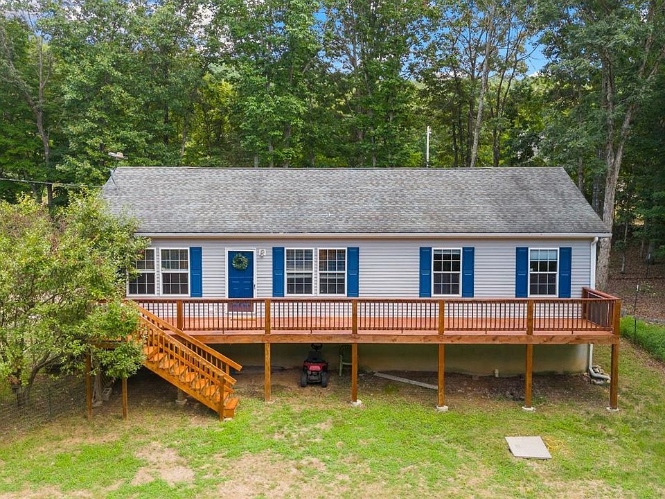 Experience the perfect blend of seclusion and convenience with this beautiful property. Nestled on a private 5-acre lot, this home features a fenced front yard, a large deck, and a spacious covered parking area, making it ideal for outdoor activities and accommodating various needs. The front porch offers a charming space to relax and enjoy the peaceful surroundings. Inside, the home boasts a great open floor plan with ample cabinet space, an island for sitting, room for a dining room table, and a large living room.The master suite is situated on one side of the house, providing privacy with its large bathroom.The other bedrooms share a full bathroom, and there is a fourth bedroom that could easily be used as an office or playroom.The property offers plenty of space for children to play and chickens to roam.Conveniently located off Route 29, this property grants easy access to both Lynchburg and Charlottesville.Upgrades:new flooring (2023), fresh paint,heat pump (2018),newer appliances