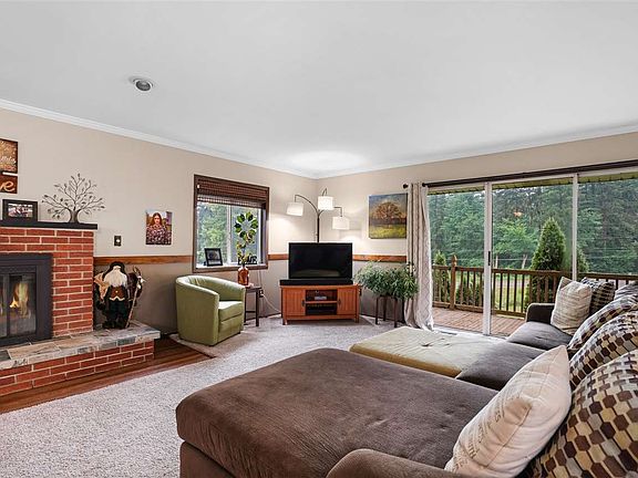 Beautiful hilltop, 1.6 acre country setting for this spacious, open & updated ranch style home! Amazing kitchen with custom Maple countertops, tiled backsplash, new stainless appliances & unique stainless steel sink as just one of the focal points of the kitchen. Want to entertain family & friends? You'll love the open Kitchen/Dining/Living Rms, with fireplace, sliders to front balcony & rear deck - great views no matter which direction you look! 3 bedrooms and 2 full baths complete the main floor living space, with the fully finished walkout lower level offering a second fireplace, Laundry Rm & 1/2 Bath combo, 4th bdrm, large Family Rm, and storage space as well. New Amana furnace & central air in 2019, appealing landscaping & private, partially wooded setting puts this home on your "must see" list!