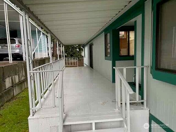 MOTIVATED SELLER!!! Welcome to this spacious 2 bedroom double-wide manufactured home located in the desirable 55+ community of Kloshe Ilahee. Brand new carpet with upgraded pad in both bedrooms, vinyl plank flooring throughout the rest of the house. Walk in closets in both bedrooms. Primary has attached 5 piece bathroom. Entertain on the covered front deck nearly the length of the home accessed via both the front door and slider off dining room. Carport easily accommodates 2 cars and hasattached storage shed. Brand new roof in July 2023. Community clubhouse features a seasonal pool, sauna, exercise equipment, brand new hot tub, pool tables and theater area. Close to restaurants, shopping, and freeways. All appliances stay.