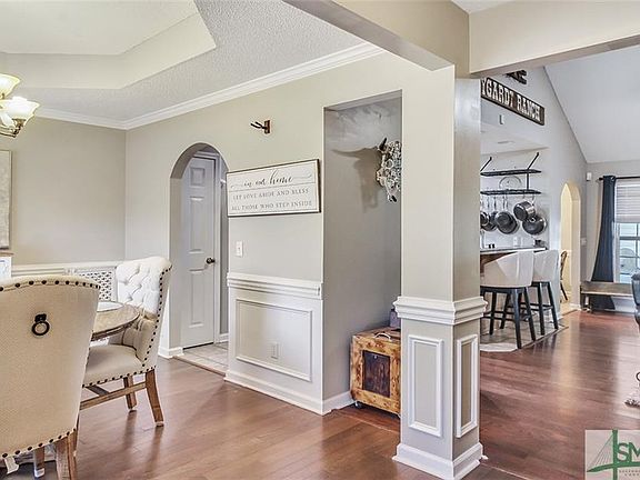 Beautiful 4 bedroom/2 bathroom ranch situated on over an acre of land! This brick beauty boasts 14 foot cathedral and vaulted ceilings, custom cabinetry, new stainless steel appliances, detailed trim work throughout, cozy fireplace, and more! NEW HVAC installed within the last year, NEW 50 Year Architectural shingle roof currently being placed on, new water softener, beautiful new screened in patio for entertaining, and large shed for all of your tools and yard equipment. Hardwood floors are located throughout the main living areas. The master suite is situated on the opposite side of the home for ultimate privacy and contains trey ceilings, and large closets! The en-suite contains custom cabinets, a double vanity with quartz countertops, and a jetted soaking tub/shower combo! Fenced in backyard and deep 2-car garage! Conveniently situated close to shopping/dining, Fort Stewart, Hunter Army Airfield, and Gulfstream! Do not delay! This home will not last!