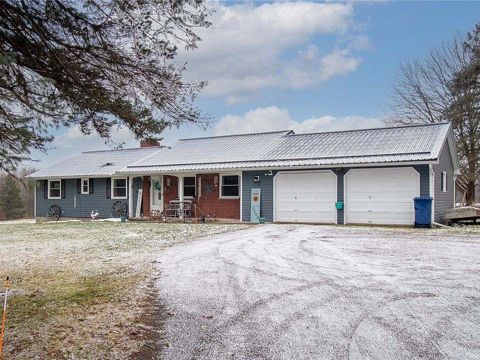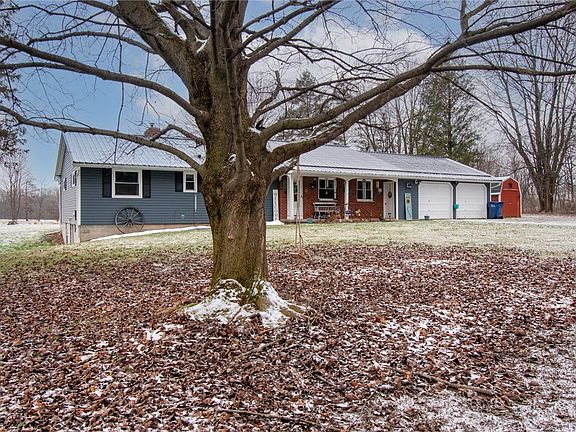THIS COUNTRY BEAUTY HAS 7+ ACRES, charming 3 bedroom, 2.5 bath ranch with attached 2 car garage and shed. Full Walkout basement with fireplace and full bath, needs finishing, has great in-law potential. Home improvements include 2014 Fireplace insert in Living room Fireplace, 2015 new vinyl siding and 2018 new windows. New Kanga Metal Roof 2019, new laminate flooring 2020, new quartz counter tops in main bath, kitchen and laundry rooms. Hot water tank 2022. Huge, enclosed porch overlooking rear yard. Country feel yet close to schools, shopping and Rt. 104 access. Private and Peaceful setting. There is also an access road to property off of Boynton Rd. Farmer has lease for 4 acres for 2023 harvest. This listing is subject to seller finding suitable property.