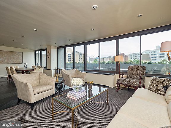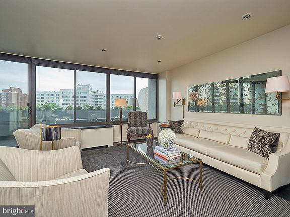 Complete sophisticated renovation in iconic Watergate! Every detail is stunning. See the July Fourth fireworks from your private balcony! 1805 sq ft luxurious interior 2 bedroom, 2.5 baths. Custom features include oak herringbone floors and new solid wood designer doors with sophisticated trim, new double-pane windows on both levels, elegant stone wall with inset fireplace. Fantastic living and entertaining space. The chef's kitchen is highlighted by a strong and beautiful, durable stain resistant Florim full slab countertop and backsplash peninsula which wraps into an elegant seating area for breakfast or cocktails, with beautiful glass front cabinetry above. (Check out Florim: youtu.be/YyM_GBW7rB8 ) Kitchen features custom cabinetry, Sub-Zero refrigeration, Fisher Paykel double dishwasher, microwave drawer, and a state of the art 48" Bertazzoni heritage series range with double oven and griddle. Balcony with built-in planters spans the entire length of the apartment and features marble tile accents and Chilewich floor covering, with space for lounging and dining. Second level bedrooms have been reconfigured to provide maximum storage with custom closet system and rare in-unit laundry. Spa-style baths with classic Calacata tiling and Kohler fixtures, body sprays, rain showers, and more. Great Watergate amenities include beautiful gardens leading to a relaxing pool, fitness room, round the clock front desk, doorperson service, roof deck, shopping & restaurants on-site, and more! Parking included and extra storage. All inclusive Co-op fee includes property taxes, all utilities, internet/cable, maintenance of HVAC, and underground garage parking. High walk score: walking distance to the Kennedy Center, Georgetown Waterfront, Foggy Bottom Metro, GW, Watergate Hotel & Spa, restaurants, Whole Foods, Trader Joes & more! Exclusions: foyer chandelier, dining room sconce, and powder room mirror. Turn-key and sophisticated!