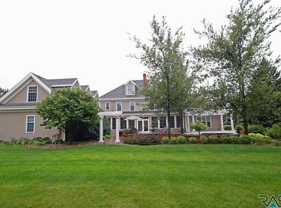 Dream Estate! This stately 3 story home is stunning from top to bottom and is situated on a park-like acre of land with mature trees. Located in convenient south central Sioux Falls with only five minutes to most everything; walk to bike trail, park, dining, shopping, and entertainment.. This remarkable home is finished with the most impressive of standards and details beyond imagination. Main floor includes a fabulous Master Bedroom suite, gracious two story foyer, study and living rooms with fireplaces, office, formal dining, kitchen, casual dining, back foyer, laundry room, power room, and an enclosed 3 season porch that opens onto an amazing outdoor living area and backyard. Second level has 4 bedroom suites with personal baths. there is also a sitting area and a 32x17 exercise room. The third level is a media and recreation area complete with guest bath and wet bar. Heated 3 car garage and plenty of room for at least 3 more. Unfinished full basement offers expanding opportunity