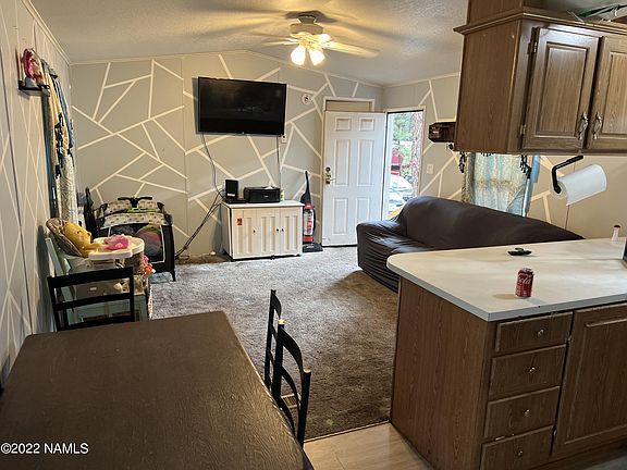 Lovely 2 bedroom, 1.5 bath single wide available close to the heart of Flagstaff, with easy access to both Woody Mountain Rd and the I-40. Tucked away in the trees, you will feel the forest all around you. Land is Leased for $560mo.