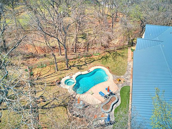 Edmond Custom, professionally designed home has so much to offer. 3 bedrooms plus an office with a door leading out and 3 baths plus a half bath for your guests. You are greeted by high ceilings with wood beams & an open floor plan. The kitchen has both rainforest marble and Richlite countertops. You will love the walk in safe room and upstairs bonus room not included in square foot. The outdoor pool is heated & the home is on almost 2 acres. The home has Geothermal installed, lots of built-ins, wine cooler, double ovens, Bosch dishwasher, tankless water heater, lawn sprinkler system, laundry room has a sink, LED lights throughout, water softener, osmosis filter in kitchen, built in outlets in the living room floor, built in poolside grill, & whole house generator. See included Feature Sheet. One year First American Home Warranty with Eagle Premier included. Part of property in flood zone; home doesn't require flood insurance.