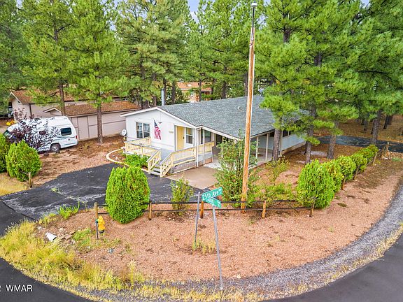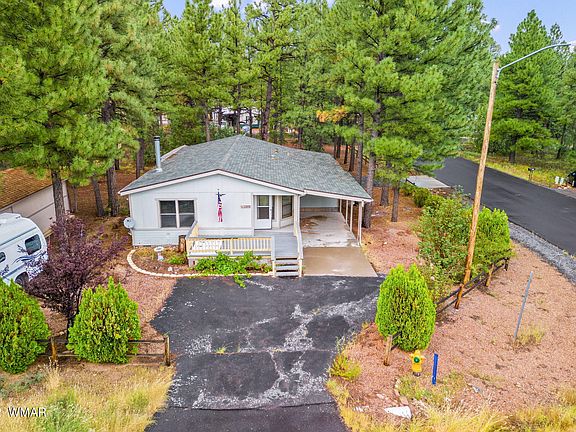 Super cute and very quiet home tucked away on large heavily shaded pine tree covered corner lot! 2 covered carport! Large deck in front! Large screened in Arizona Room! Cozy open floor plan with a real wood burning stove in the living room, well cared for home in the heart of Show Low! Home comes furnished!