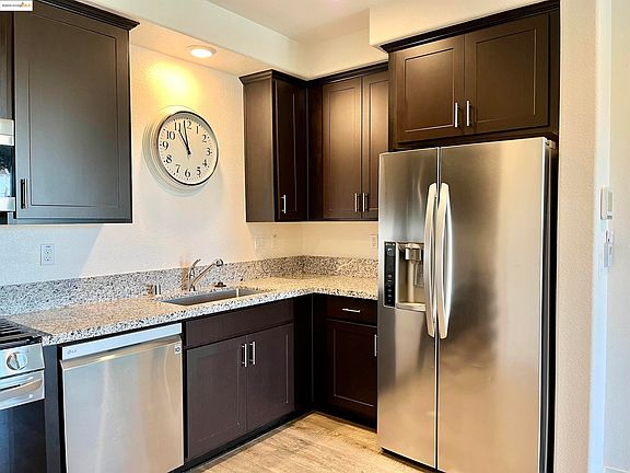 Sharp 1 BD, 1 BA, ground level unit. Open floor plan, granite counters in Kitchen, gas range, refrigerator and pantry. Stack washer/dryer in unit. Laminate in living room and kitchen. Gym Facility Available. Close to Restaurants, Shopping, Easy Access to Hwy 4.