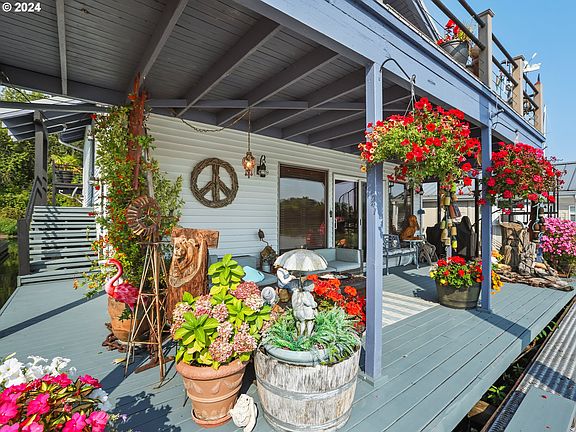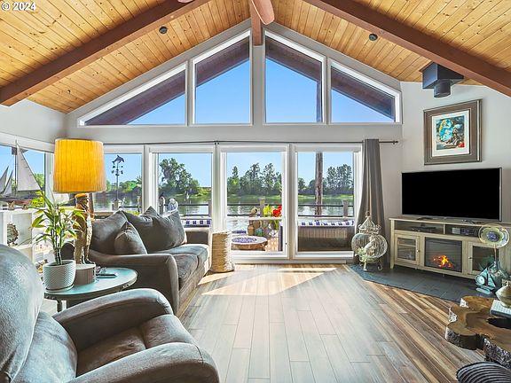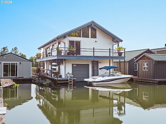 Yes! A large floating home in a great spot for fishing, boating, and more! This floating house has a bright, open plan living room and kitchen with beautiful vaulted tongue-and-groove wood ceilings and walls of windows for abundant natural light. Panoramic views of the Multnomah Channel and Sauvie Island from nearly every room in the house. Sliders open to spacious decks on 3 sides of the home. JennAir gas downdraft range and plenty of kitchen storage. Generous primary suite features walk-in closet, double sinks, and large balcony off of the back of the house. Room to park your boat. Near Cornelius Pass Road and amenities in Scappoose.