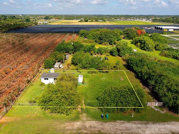 Charming Single Family home sitting on close to HALF AN ACRE of privacy and peace in the desirable and highly sought after area of the Redlands. Excellent opportunity for buyer, builder or investor to expand their dream home on agricultural land. This large fenced in 19,297.08 Sq.Ft lot with fruit trees, has endless possibilities. Property features an open floor plan with amazing views. Roof installed only 5 years ago. All windows newly installed 4 months ago. Complete accordion shutters. Includes shed for extra storage, septic tank and well water. Minutes to Krome Ave and great restaurants. Close to Kendall and a quick and easy track to Key Largo, FL.