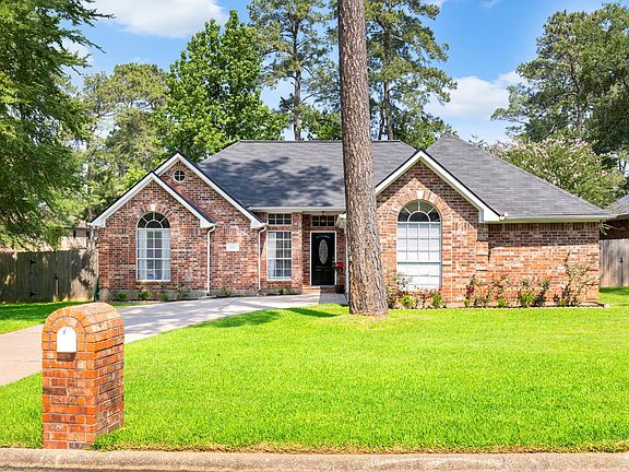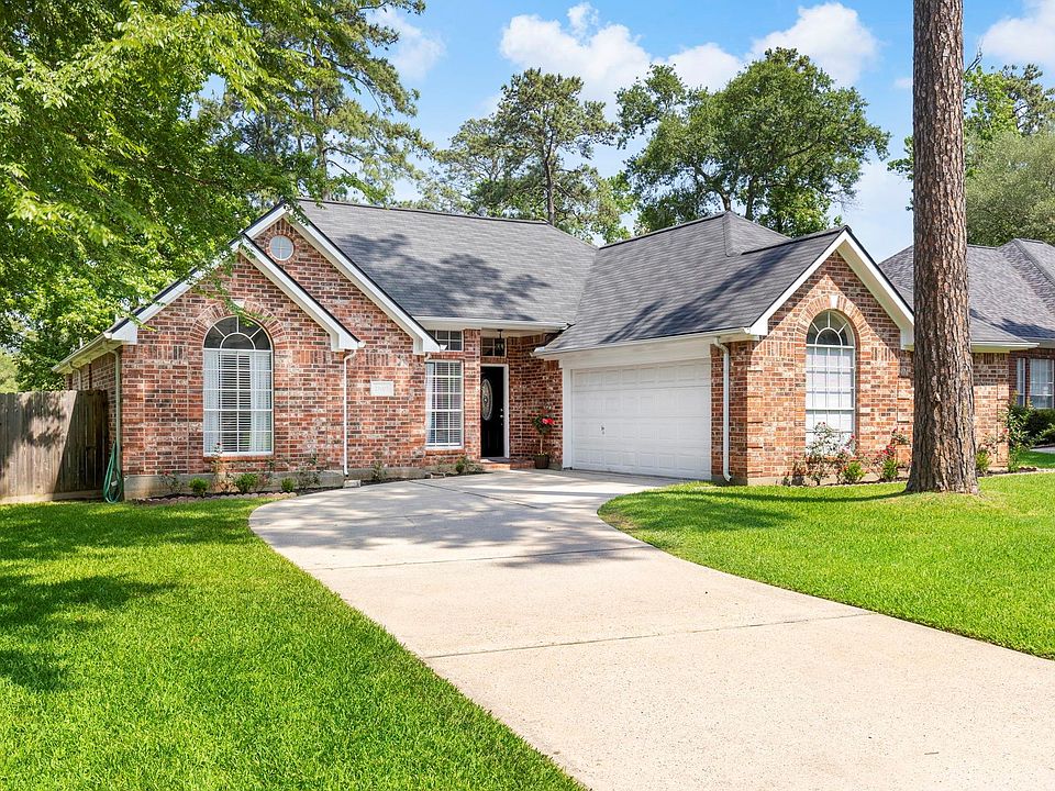 Welcome Home! This beautiful one story is spacious and situated on a corner lot. As soon as you enter the home you are greeted with high ceilings, tile-look hardwood floors and neutral paint colors. Corner fireplace that is viewable from the family / dining and breakfast room! Kitchen features white cabinets with granite countertops. Easy access to utility room off kitchen and garage. Primary suite features a sitting area - primary bath has dual sinks, jetted tub, separate shower, water closet, and walk-in closet. Patio off the kitchen with a large backyard with plenty of space for outdoor entertaining and space for a pool. Roof/HVAC approx 6 years old. Water Heater approx 6 months old. Easy access to 99 and The Woodlands. Zoned to Klein ISD.