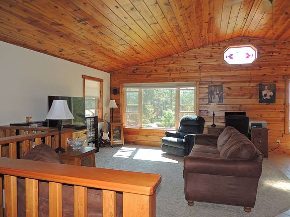 Country feel yet just minutes from downtown Custer! This 4 bedroom and 3 bath home has a woodsy feel and borders National Forest Service. Open great room with breakfast bar and deck off of the dining room. Master suite is spacious and has a covered deck with lots of privacy. Downstairs is set up for entertaining with a wet bar and has a wood burning stove. The two car garage is connected to the house with a covered porch. Lot is 1.43 acres.