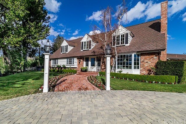 Beautifully crafted Cape Cod Estate situated high on a knoll in the private, gated, equestrian community of Hidden Hills. Set on 1.5 acres, this stunning home has been lovingly cared for & updated. Dramatic entry open to the 2nd story w/picture window flows into the elegant LR w/cust built ins, crown molding & bay window. Separate formal DR. Remodeled powder bath. Updated kitchen is highlighted by center island, breakfast bar(+ huge walk in pantry) is open to the expansive family rm w/ sliding French drs leading to the amazing yard. Downstairs master has a completely remodeled bath straight out of Pottery Barn w/free standing tub & shower. Separate wing has 2 additional rms + ¾ bathâ could be guest quarters, gym or bonus rm. Upstairs you will find the 2nd master w/remodeled bath highlighted by tumbled marble & Japanese soaking tub along w/3 other spacious bdrms that share a remodeled hall bath. Upstairs loft/office area w/cust built ins. The paver driveway leads to an oversized 4 car garage w/extra bike garage. Sport court/Separate area to park numerous vehicles. The well-appointed grounds boast a beach entry pool & spa w/waterfall -brand new in 2009. Outdr BBQ & separate pergola â ideal for entertaining. Flexible flrplan offers many possibilities.