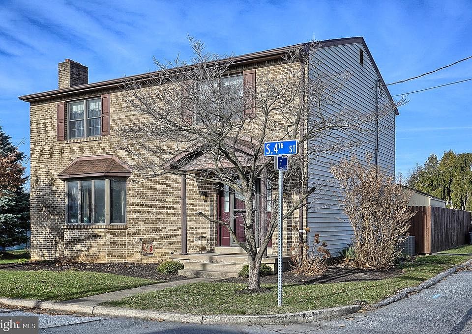 This home is on the east end of Steelton. It has amenities top to bottom. Great curb appeal, brick front, large living room with fireplace, formal dining room, both with newer floors; large eat in kitchen with a delightful built-in nook area, newer appliances, tile backsplash, and a laundry room with slop sink, all on the first floor! There is a reading room/tv room that has sliders that go out to large covered patio area with new shed. Nice yard with fencing. The wooden staircase leads to 3 nice size bedrooms and a bath with tub/shower and built-in sink area. Basement has kitchenette (no range) and a huge room, currently used as craft room. It also has a full bath and yet lots of storage space exists! 1 year home warranty with acceptable offer.
