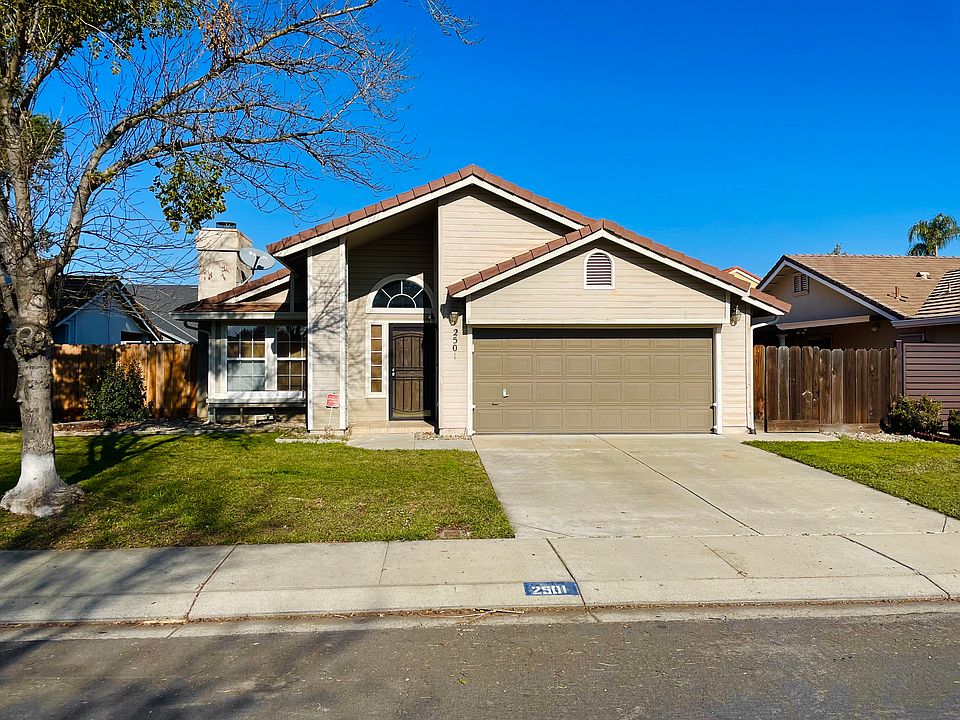 Very nice three bedroom two bath home in desirable Modesto neighborhood. New inside paint and luxury vinyl planks throughout. Kitchen features plenty of storage, new dishwasher and range. Light and bright living room with fireplace. Nice size primary bedroom with walk in closet and bath. Central air and heating, two car garage with storage shelving. Large back porch for BBQ fun. $2200/month. 2501 Alexia way. Contact Mike at Strickler Real Estate.