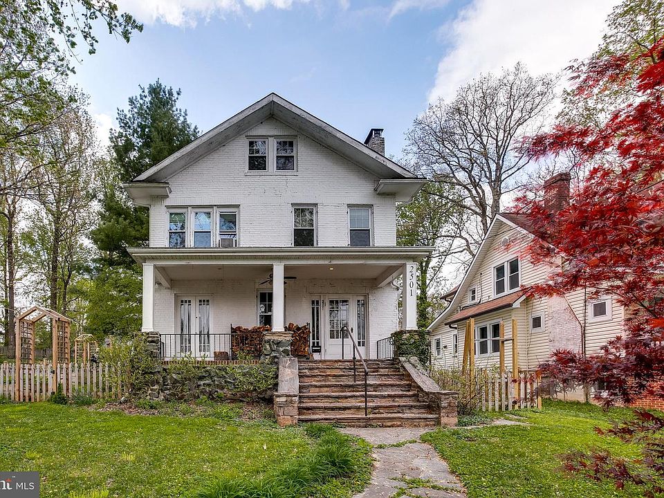 This lovely traditional home in Larchmont will be sure to charm you. From the large sun splashed living room with fireplace and wood stove insert to the traditional dining room with the bay window. Enjoy the country kitchen with breakfast nook complete with table and benches. There is a powder room on this level with a first floor laundry. Original oak flooring in most rooms. The second floor has 4 nice size bedrooms, full upgraded bath plus a half bath for the primary bedroom. Then take the staircase up to the third level to the fully finished attic which can be used as a family room, game room or a huge owners bedroom retreat. There is an additional full bath with 2 sinks and a Jacuzzi tub for your enjoyment. The basement is unfinished and has been waterproofed w/a French drain system. Parking is not a problem with a driveway and 2 car garage with electric and water. A natural gas back up generator is included, along with a chest freezer in basement. This corner lot is well landscaped with perennials and fruit trees plus an herb garden. There is a 14x12 covered pavilion for summer dinners in the evening. You will also find a garden shed with real windows for your planting needs. The backyard is enclosed with a beautiful scalloped wooden fence for some privacy. You will love it!