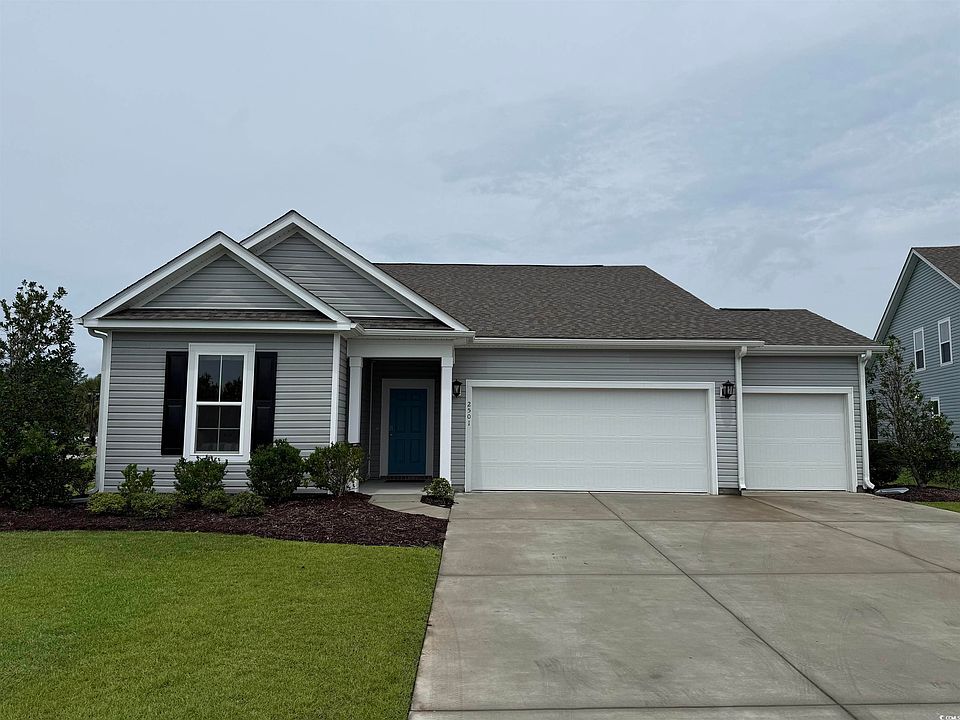 Model for Sale! Closing will take place in July/August. Three car garage Georgetown home features 2 bedrooms, 2 baths, study and a Carolina room. The marvelous kitchen boasts 42" crisp gray cabinets, Quartz countertops, Whirlpool Stainless Steel Kitchen appliances (natural gas range, over the range microwave vented outside, dishwasher), Level 2 Hexagon tile backsplash, and Progress Lighting pendant lights over the Island. The kitchen sink is located in the counter tops facing the Carolina room. The kitchen Island is a fabulous open space for meal prep, dining, buffet style entertaining, baking, and more. The Great room features a vaulted ceiling and is open to the dining room and kitchen. Primary bath features bathtub and a shower with double vanities with quartz counters. Mohawk REV Wood laminate flooring is included in the living areas and primary bedroom. 100% Energy Star Certified with the complete Tyvek house wrap system and higher insulation means improved energy efficiency and indoor air quality to give you a healthier, and more comfortable home with less pests, less moisture, less air loss, and a lower utility cost. Amenities include a premier location (2 miles to the shopping and dining venues in Carolina Forest, 6 miles to the beach, 7 miles to Market Common, and minutes to Highway 31), a community pool and clubhouse with a catering kitchen, gathering hall, and exercise room. Furniture available at additional price.