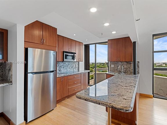 Discover this bright and spacious 2-bedroom, 2-bathroom apartment at the boutique 12-story Brickell Park condominium, ideally located in Brickell at the entrance to Key Biscayne. This well-appointed residence features elegant bamboo wood floors, updated bathrooms and closets, hardwood kitchen cabinets with granite countertops, and stainless steel appliances, including new electric range and dishwasher. Enjoy stunning, unobstructed views of the Brickell skyline from multiple balconies and floor-to-ceiling windows. Freshly painted and move-in ready, this apartment offers a perfect blend of vibrant city living and peaceful retreat, all while avoiding the hustle and bustle of Brickell traffic.