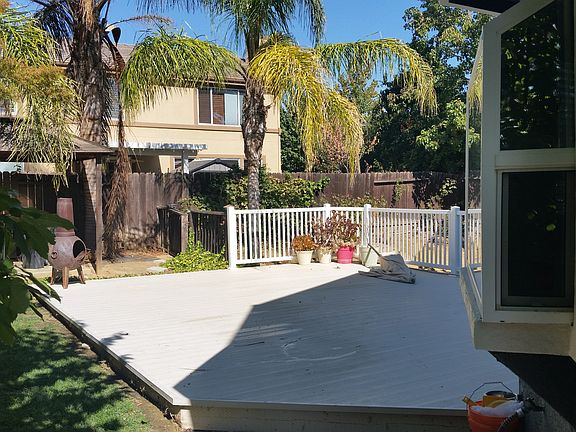 NO HOA on this beautiful & unique family home! 4 bed 3 full bath, with one bedroom and full bath on bottom floor with a family room. 2 bedrooms, 1 full bath, & master bedroom with on suite bathroom on top level, along with loft/media room and laundry room. Main level has living room and oval dining room with vaulted ceilings, completely remodeled kitchen (including appliances) with sliding door access to backyard upper level. Upper level backyard has huge composite deck with safety railing, pre-wired (both 220 and 110 volt) hot tub pad and gazebo, 2 mature Thompson seedless grapevines, 3 mature cherry trees (2 Bing and 1 Rainier), & a lush green lawn. Bottom level has sliding door access to lower backyard, which is very shady and configured with pavers for low maintenance. In the past 18 months the home has a new A/C unit and new water heater. Water softener system in place as well as an RO (reverse osmosis) water purification system tied into kitchen sink drinking tap and icemaker. Master bedroom has a double-sided gas fireplace with one side in the bedroom and one side in the master bathroom, right next to the new soaking tub. New flooring throughout most of the home and new vinyl blinds. Oversize garage has floor to ceiling cabinet storage, a small workbench and garage door opener. Both front and back yards have automatic irrigation and power outlets.