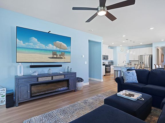 Presenting this stunning, move-in-ready 2023 Sydney floor plan home, thoughtfully upgraded and beautifully maintained in the vibrant Waterside community of Myrtle Beach. Set on a spacious lot with extra privacy on the right side, this better-than-new 4-bedroom, 2.5-bathroom home features a mix of laminated wood, tile, and carpet flooring with high, smooth flat ceilings throughout, professionally painted in inviting coastal colors for a warm, welcoming atmosphere. The open-concept living and dining area, with a sliding glass door to a relaxing screened-in back porch, flows seamlessly to the private backyard, while the showstopping kitchen boasts granite countertops, a large center island with family seating, stainless steel appliances (refrigerator not included), crown-molded cabinetry, a walk-in pantry, recessed lighting with dimmer switches, pendant lighting over the island, and a chic dining area light fixture. The main-level primary suite offers an added ceiling fan, a large walk-in closet, and a private bath with a dual sink vanity, water closet, and deluxe step-in shower, while upstairs includes three additional bedrooms, a full bathroom, and a grand family/bonus room perfect for guests, kids, an office, or a media space. Additional features include a guest powder room, a laundry room (washer and dryer not included), ceiling fans in the living room and porch, upgraded landscaping with low-maintenance river rock flower beds, an irrigation system, and a fully painted two-car garage with a professionally finished epoxy floor. The Waterside community enhances your lifestyle with a clubhouse, sparkling outdoor pool with sunning deck, tennis courts, playground, and community garden, all just minutes from Myrtle Beach’s pristine beaches, championship golf, public fishing piers, shopping, dining, award-winning off-Broadway shows, and everyday conveniences like grocery stores, banks, post offices, medical centers, doctors’ offices, and pharmacies. Why wait to build when you can move right into this meticulously upgraded home?