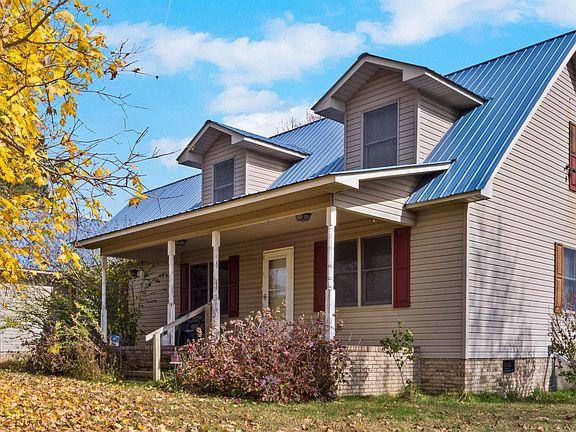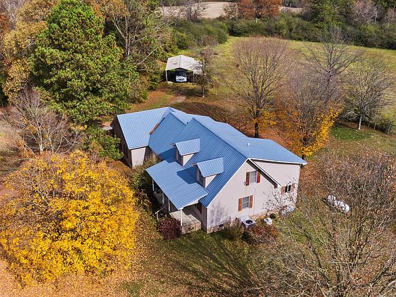 Crossville - Out in the country with lots of charm & space AND 22 acres. Brick/vinyl dwelling w/attached 2-car garage AND detached metal pole barn w/RV cover and pad. Covered front porch waiting for your rockers. Spacious living room with wood burning heater. Open kitchen and dining area with breakfast bar. Breakfast room and laundry. Main level primary bedroom and bath. Upstairs offers 2 additional bedrooms, shared full bath, additional room being used as a sitting room w/storage AND a hidden room accessed through the closet. Bamboo wood floors on the main level. Bamboo laminate floors on 2nd level. Kitchen appliances to remain. Screened porch on back. Plenty of space and lots of potential!