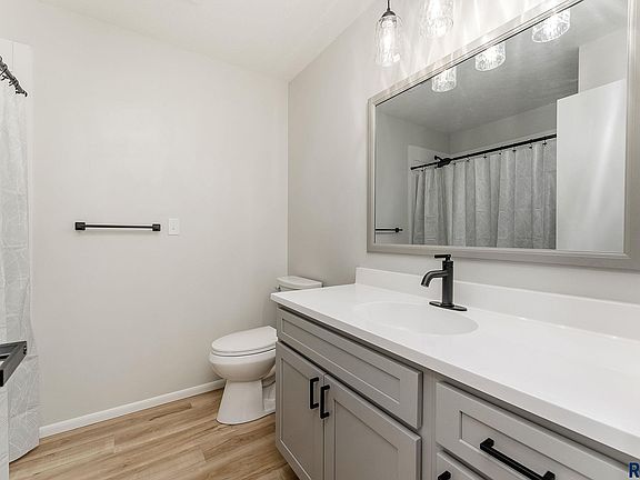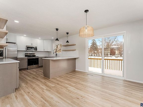Fully remodeled home in Central Eastside of Sioux Falls! You will not find another home so perfectly finished! This beautifully updated split foyer home is a spacious 4-bedroom, 3-bathroom, with a 2-stall tuck under garage. Let the pictures speak for the home. Step inside to discover sleek LVP flooring that covers the entire home, providing durability and elegance. The kitchen is a true highlight, with brand-new cabinets (dove tail/soft close drawers), countertops, and GE appliances, including a stunning backsplash, a new sink, and faucet, all complemented by updated light fixtures and recessed canned lighting throughout the home, creating the perfect ambiance. The home has been finished with newly textured ceilings featuring the unique crow's foot design and fresh paint throughout, adding to the modern appeal. The exterior of the home has been newly painted, with new fascia, soffits, and gutters added for improved curb appeal and functionality. Plus, brand-new Pella windows have been installed throughout the entire home, and they come with a transferable warranty for peace of mind. This home is ready for you to move in and enjoy, with every detail carefully crafted to provide both style and functionality. Don’t miss your chance to own this beautifully remodeled home in a prime Sioux Falls location!