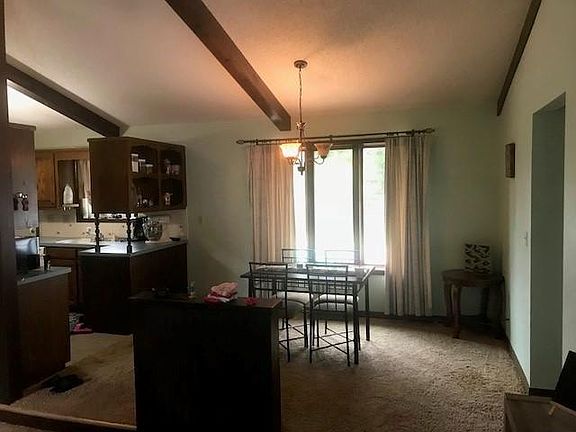 Open floor plan with beamed ceiling & fireplace. Corner lot with nice back yard with privacy fence and 4 ft. deep inground pool with cool deck. Maintenance free exterior.