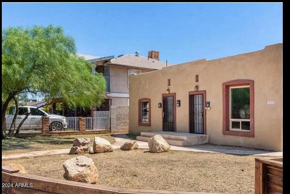 Solid income producing property includes 3 units, each with 1 bed/1 bath. All units have updated kitchen with quartz counter top, white shaker cabinets & stainless steel appliances The bath in each unit is updated as well. Grey ceramic tile flooring throughout, dual pane windows and new AC units installed in 2022. There is a shared laundry room with 1 washer/1 dryer . Huge undeveloped back yard is a part of the property.