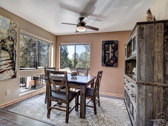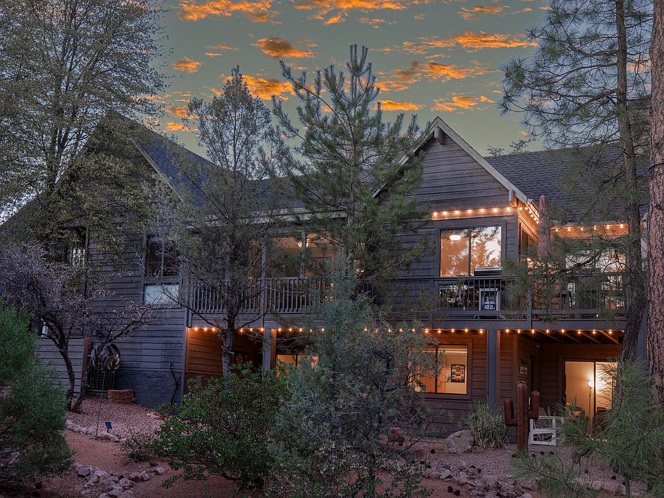 A truly special mountain retreat nestled amongst the tall pines along the 9th fairway in the Chaparral Pines gated country club community. This perfectly situated mountain getaway sits in a quiet cul-de-sac and is sized to be a full-time residence or weekend sanctuary. The open floor plan features main level living with a master and guest bedroom and two full baths on the primary floor. The many windows give a bright and airy feel to the open concept great room, featuring a large gas stone fireplace. The well-appointed kitchen features a large center island with ample cabinet space and stainless-steel appliances, and a pocket door leading to a laundry room and pantry. Just off the kitchen is a cozy screened-in porch where you can relax and unwind while enjoying the cool mountain air. Additional outdoor living areas include a recently rebuilt trex deck with a view of the pines along the golf course. The lower level features a new wrap-around paver patio providing an abundance of outdoor space for chilling with a book, grilling, or just taking in the views. The floor plan lends itself perfectly for entertaining and hosting guests, with an additional bedroom downstairs, plus a large family room with a second gas fireplace and a wet bar leading to the patio. A walk-in storage area off the family room provides storage space for less frequently used items, as does the fully floored attic above the garage. From the moment you enter the house, you experience the serenity of the home and its surroundings. Upgrades include new air conditioning and furnace as of May 2024, new flooring on the lower level and sunroom, shades for the sunroom, a new trex deck, new wrap-around pavers, interior painting, upgraded appliances, new windows throughout and exterior lighting to enjoy the outdoor spaces during the evening hours. The golf cart, hugging bears, and much of the furniture can convey with an acceptable offer. This turn-key mountain home is just a short walk from all of the amenities at the Trailhead Park and Chaparral Pines Clubhouse.
