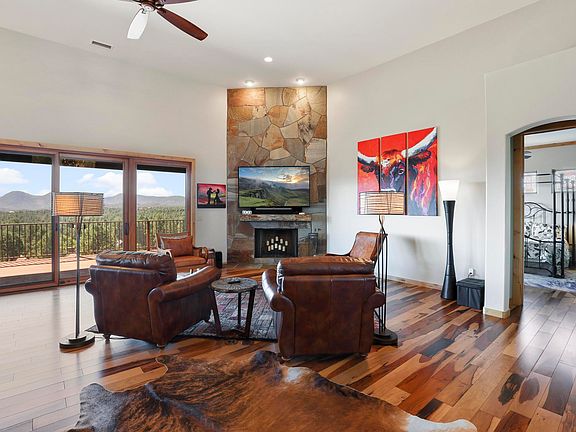 WOW! This home has one of the most spectacular views within Chaparral Pines, a luxury golf course and gated community. The home has a huge outdoor deck, 4 bedrooms and 3 ½ baths. The main floor is fully accessible with no steps and includes a spacious primary suite, a beautiful guest suite, a gourmet kitchen open to the dining and great room areas, as well as laundry, powder room and 3 car garage. Downstairs are an additional 2 bedrooms, 1 bath, a sizable game/bonus room, and a large art/music/exercise studio. Special features of this home include a backup generator, EV charging station, lightning protection and low maintenance exterior. The home is offered furnished. Come take a look and imagine waking up every morning to stunning views of Arizona Rim Country!