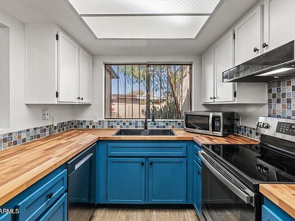 REDUCED FOR QUICK SALE! The BEST and LARGEST lot in the subdivision! REMODELED AND UPDATED TRHOUGHOUT!! This beautiful single level townhome has a fantastic floor-plan! New wood plank tile floors, Newly Updated Stylish kitchen with new Butcher Block counters, Updated two tone designer cabinets and backsplash! Fully remodeled bathrooms! NEW interior Paint, New lighting and fixtures. Featuring 2 bedrooms, PLUS BONUS ROOM, inside laundry and a 2 car garage! Amazing Backyard Orchard! Citrus trees, grapevines, garden and more! Newer HVAC and Water Heater. This community boasts an ideal location and two community pools. Close to freeways, shopping, dining, golf & hiking.