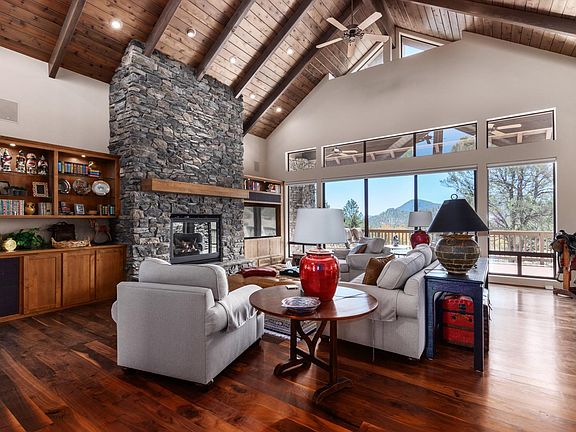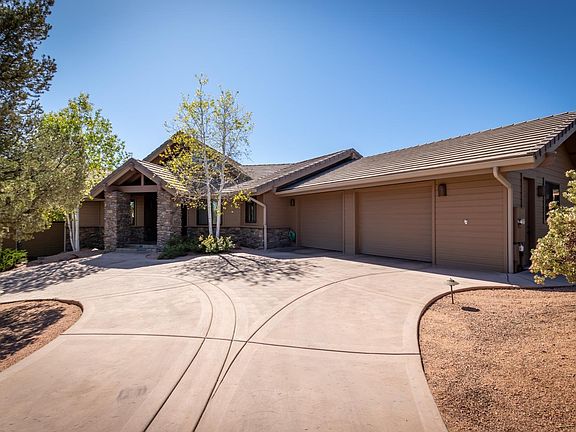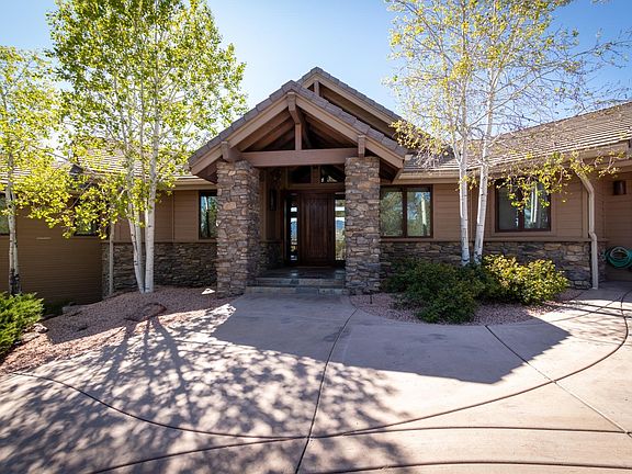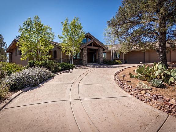 Sitting on a 1.01 acre lot this spectacular home is located on the 13 tee box at the luxurious Rim Golf Club and captures breath taking views of the golf course, Mogollon Rim, monument peak, and the Stewart mountains. The spacious great room features: gorgeous wood floors, T & G ceilings, and an impressive stone fireplace. The beautiful kitchen has: granite counters, double oven, gas range, built-in refrigerator and a big walk-in pantry. The master suite has it's own privacy deck, beamed ceiling, 2 walk-in closets. walk-in shower, and a jetted tub. Downstairs is a big walk-out basement with family room area, 2 bedrooms, 2 bathrooms, and a wet bar. Enjoy the views from the covered deck off of the main level or downstairs from the covered patio.