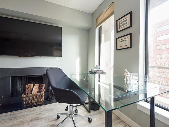 Feel at home in this fully furnished 1-bedroom, 1.5-bathroom condo located on the 5th floor of a 9-story building in West End. This charming apartment features two small standing-only balconies, offering city views through its numerous windows. Enjoy the warmth of hardwood floors and a cozy fireplace, complemented by modern stainless steel appliances and a convenient in-unit washer/dryer combo. The apartment is equipped with a queen-sized bed, a 42-inch HDTV with streaming capabilities, and central air conditioning, ensuring a comfortable living experience. The fully equipped kitchen includes a dishwasher, making meal preparation and cleanup a breeze. Parking is available for an additional $10 per day. Nestled in the West End, this apartment is part of a vibrant neighborhood in the Northwest quadrant of Washington, D.C. The area is bounded by Pennsylvania Avenue, P Street, Rock Creek Park, and 22nd Street. Known for its proximity to prominent neighborhoods like Dupont Circle, Foggy Bottom, and Georgetown, the West End offers easy access to the Washington Metro rail system. Notable landmarks include the Ritz Carlton hotel, several upscale hotels, large office buildings, and the West End branch of the D.C. Public Library. The apartment is located on the 5th floor of a building with nine stories. A smooth check-in and check-out process is ensured for your convenience.