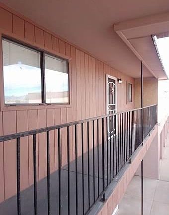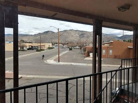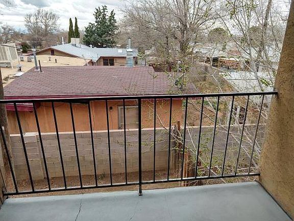This roomy, nearly 1100 sq ft, 2 bedroom sunlit apartment has a sliding glass door leading to a tree filled views from a balcony; it is on the 2nd floor with an iron security front door. It comes with 4 closets and it's own laundry room in the unit with washer and dryer hook-ups. Eat-in kitchen has laminate flooring and marble tile accent around kitchen counter. Also comes with stove and fridge included. Perfect for those who like mountain and city views with a lot of day light. Clean with fresh paint through out. Gas and electric utilities paid by tenant. 1st month rent and security deposit required. Centrally located near Juan Tabo and Menual.information. Tenant pays Electric, Gas