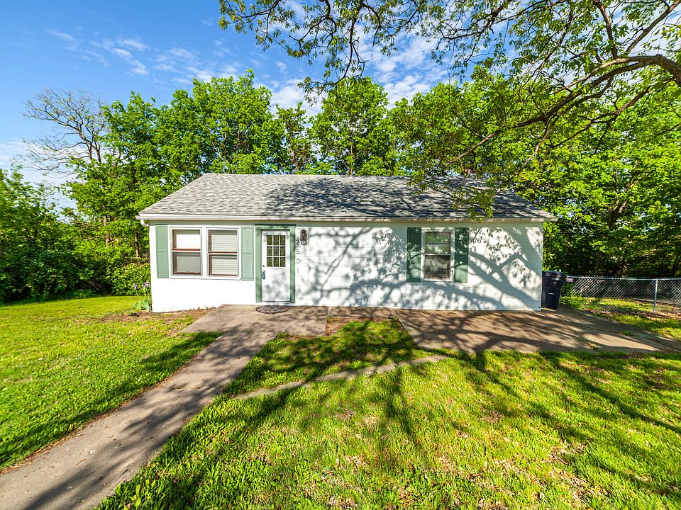 Cute and very affordable 1 bedroom, 1 bath ranch style home. Spacious kitchen & dining room with arched doorways & large living room. Electric dryer, gas stove, brand new refrigerator and brand new dishwasher, washer & dryer included with sale, bathtub, updated wiring and fuse panel, brand new front and back doors. Sits on a large lot with no neighbors toward the back of the property, potential view out of back windows, extra off-street parking for four cars, with a well maintained yard including a fenced-in dog area. The plumbing has been updated with PEX and PVC piping, large unfinished walk out basement for extra storage. Conveniently located two miles from highway on ramp and close to Cosmo Park. Economical starter or rental home. Come check it out today.
