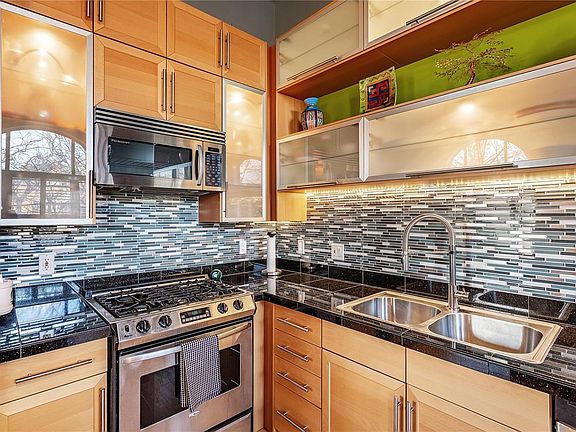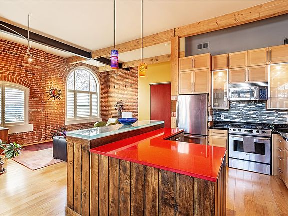 Welcome home to your unique 1 bed, 1 bath, end unit condo located in the converted historic St Dominic's Church which provides lots of character with exposed brick walls, wood beams and 11' ceilings! Beautiful 5" ash wood flooring throughout kitchen & living room. Enjoy eating at the built-in island or prep your food on the quartz counter while talking with your friends. The Kitchen is well appointed with stainless steel appliances, brand-new oven, decorative backsplash and an abundance of cabinets with plenty of counter space. Enjoy entertaining with the open layout with tons of natural light from large curved windows from the original building with custom window treatments. The large armoire in bedroom is included. Enjoy barbecues with your friends on the nice back patio. Great location, walking distance to Jefferson Park and many restaurants & coffee shops. The washer & dryer are included. And don't forget the 1 car detached garage! As bonus, Seller is providing a home warranty.