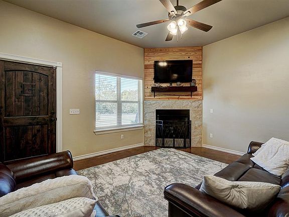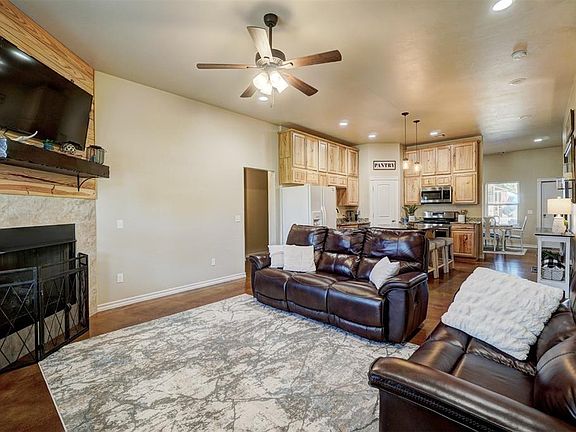 Nestled on over an acre of picturesque land in the sought-after community of Blanchard, this incredible 3-bedroom, 2-bathroom barn-style house offers the perfect blend of rustic charm and modern comfort. Designed with an open floor plan and lofty ceilings, this home features expansive living spaces flooded with natural light, showcasing its beauty. The primary suite boasts a generous walk-in closet and a luxurious en-suite bath, complete with a soaking tub and separate shower, creating a private retreat at the end of the day. Open kitchen/living concept creates a warm and friendly place for large groups to gather. Outside, the property is a true oasis. With over an acre of land, there’s ample space for outdoor activities, gardening, or even building your own hobby farm. Large 6 person storm shelter in garage. Whole garage is insulated and has 16ft wide and 10ft tall garage doors with loft in garage for extra storage. Fence is the property line. Located in Blanchard’s top-rated school district, this home offers the perfect balance of peaceful country living while still being close to all the conveniences you need. Whether you're looking for a serene place to unwind or a family-friendly home with room to grow, this barn house has it all. Don't miss your chance to own this unique and captivating property!